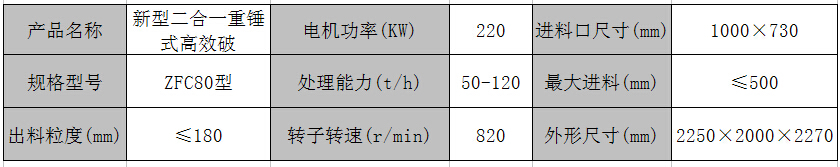 ZFC80型新型高效節(jié)能型二合一破碎機(jī)術(shù)參數(shù):